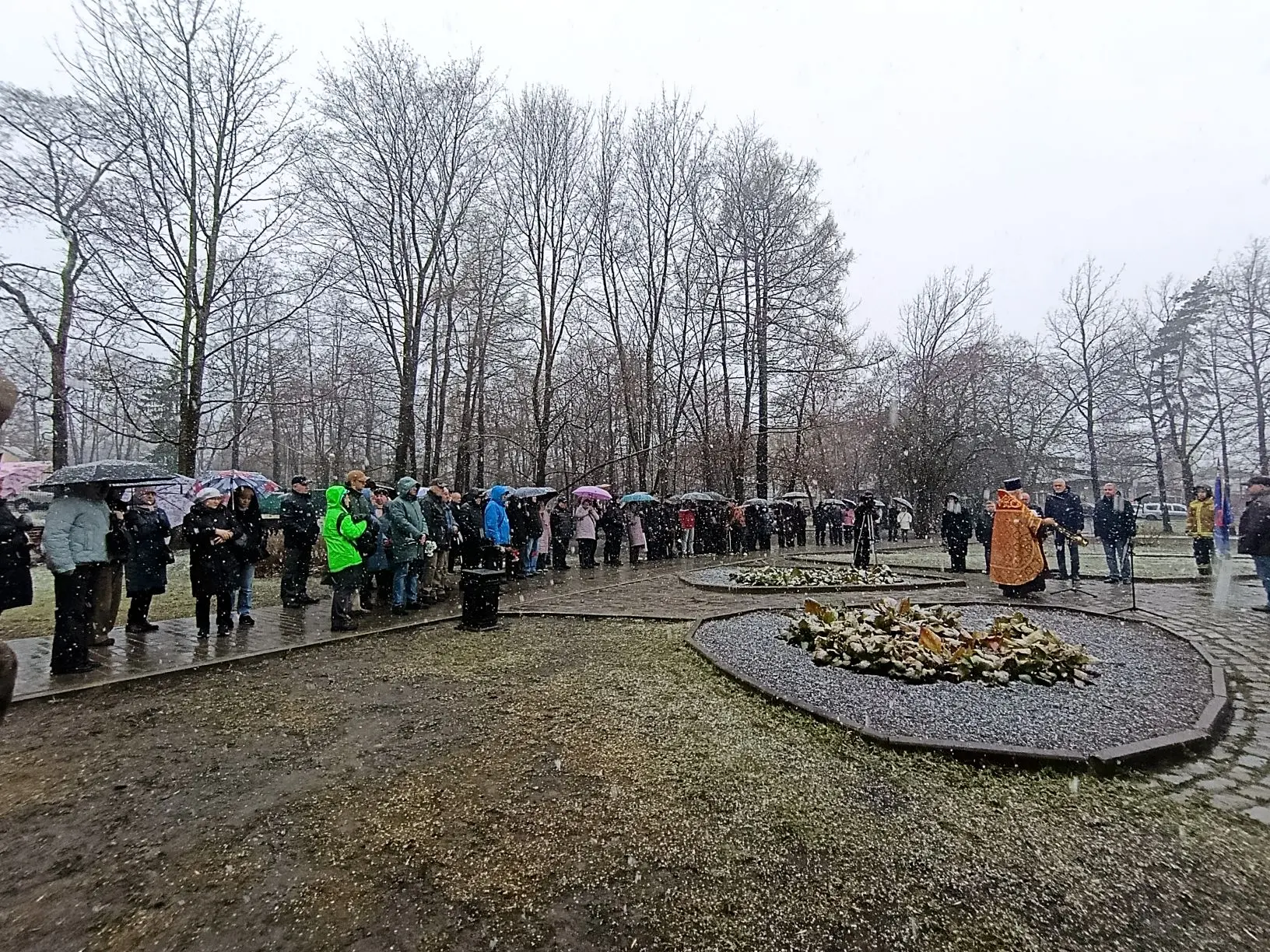 Митинг завершился минутой молчания и возложением цветов к мемориалу.