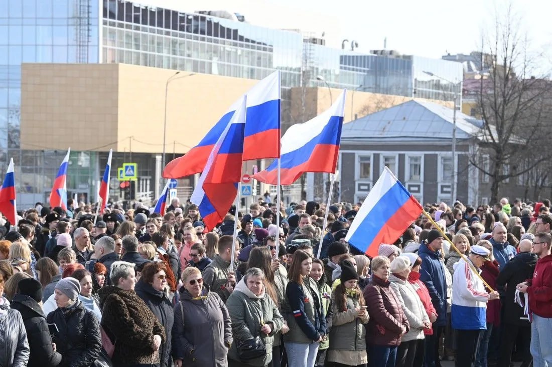 Множество горожан сегодня пришли к Петровскому Дворцу в Петрозаводске, чтобы отметить воссоединение Крыма и Севастополя с Россией. Чтобы еще раз почувствовать важность этого исторического, я бы сказал, эпохального, события.