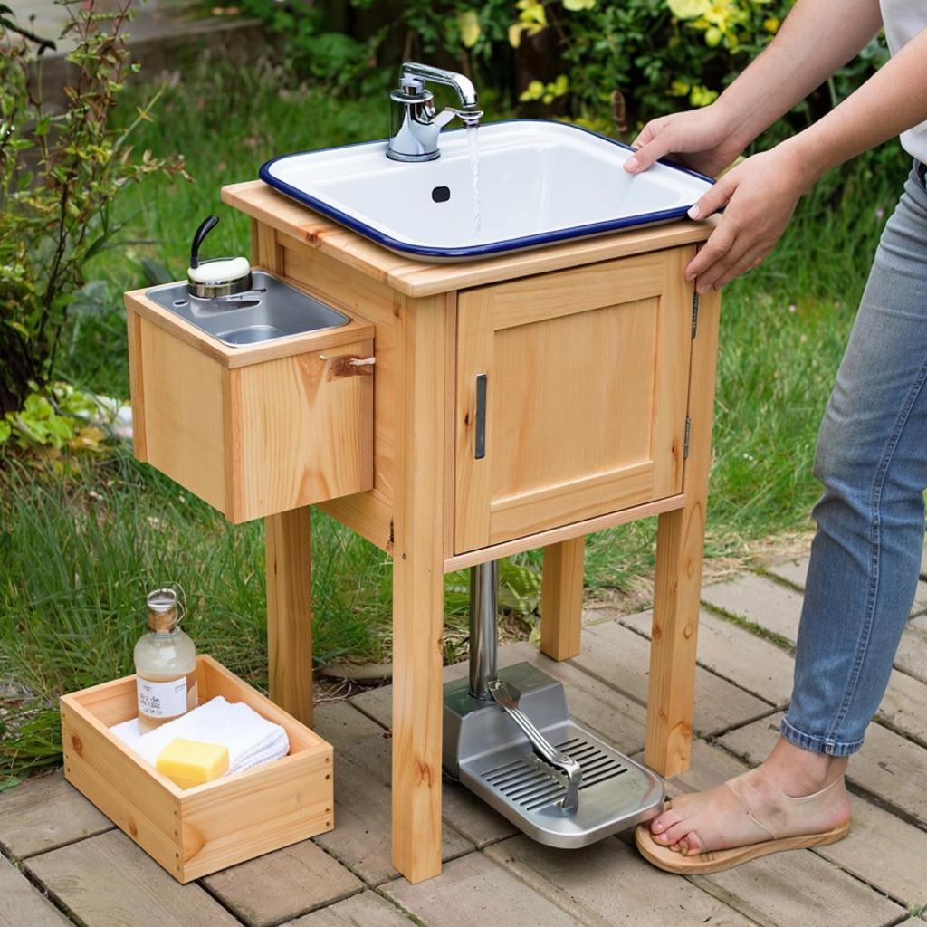 После продуктивного дня на даче, руки и посуда требуют очищения, и порой обычный умывальник не оставляет выбора. Как оставить грязь и сок растений на ручке крана? Ответ прост: умывальник с ножной педалью – идеальное решение для поддержания чистоты и удобства, не касаясь грязными руками крана.