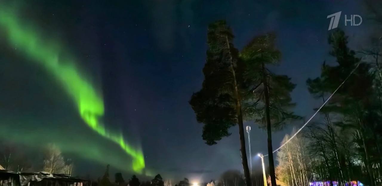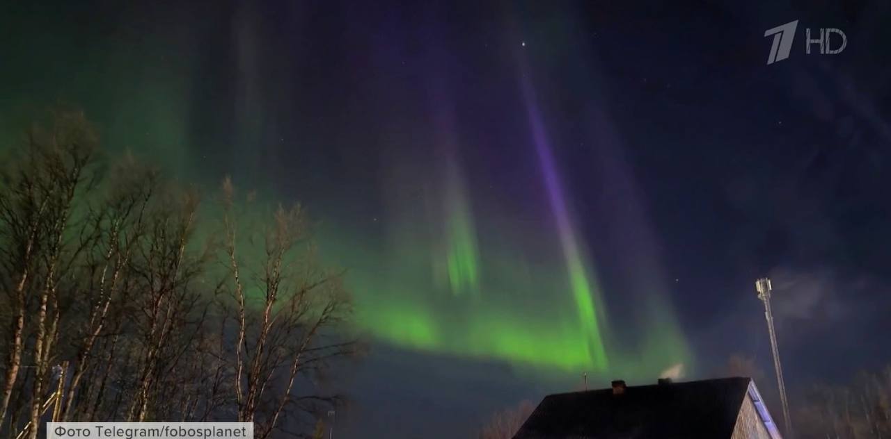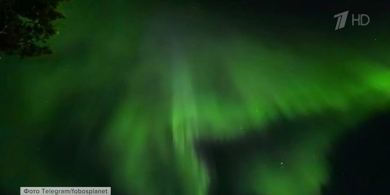Этой ночью сразу в нескольких регионах на севере наблюдали яркое полярное сияние.
