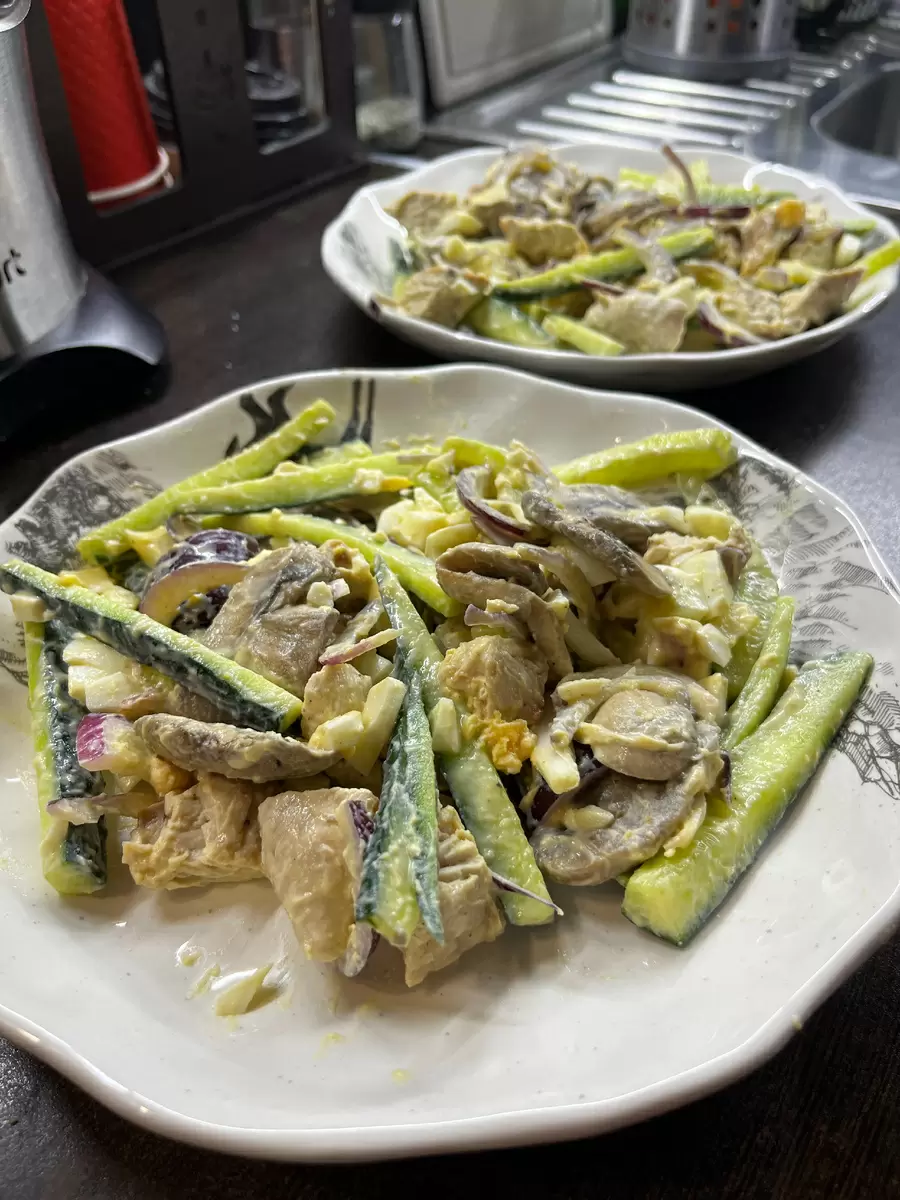 Лёгкий салат с индейкой и грибами