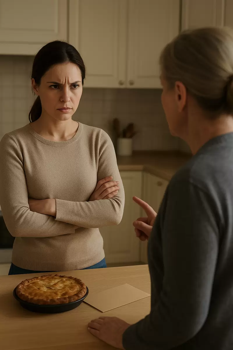 Процесс готовки пирога едва начинался, когда в кухню ворвался колкий вопрос свекрови. Сложив руки на груди, она стала словно судья, уже выносящий приговор.