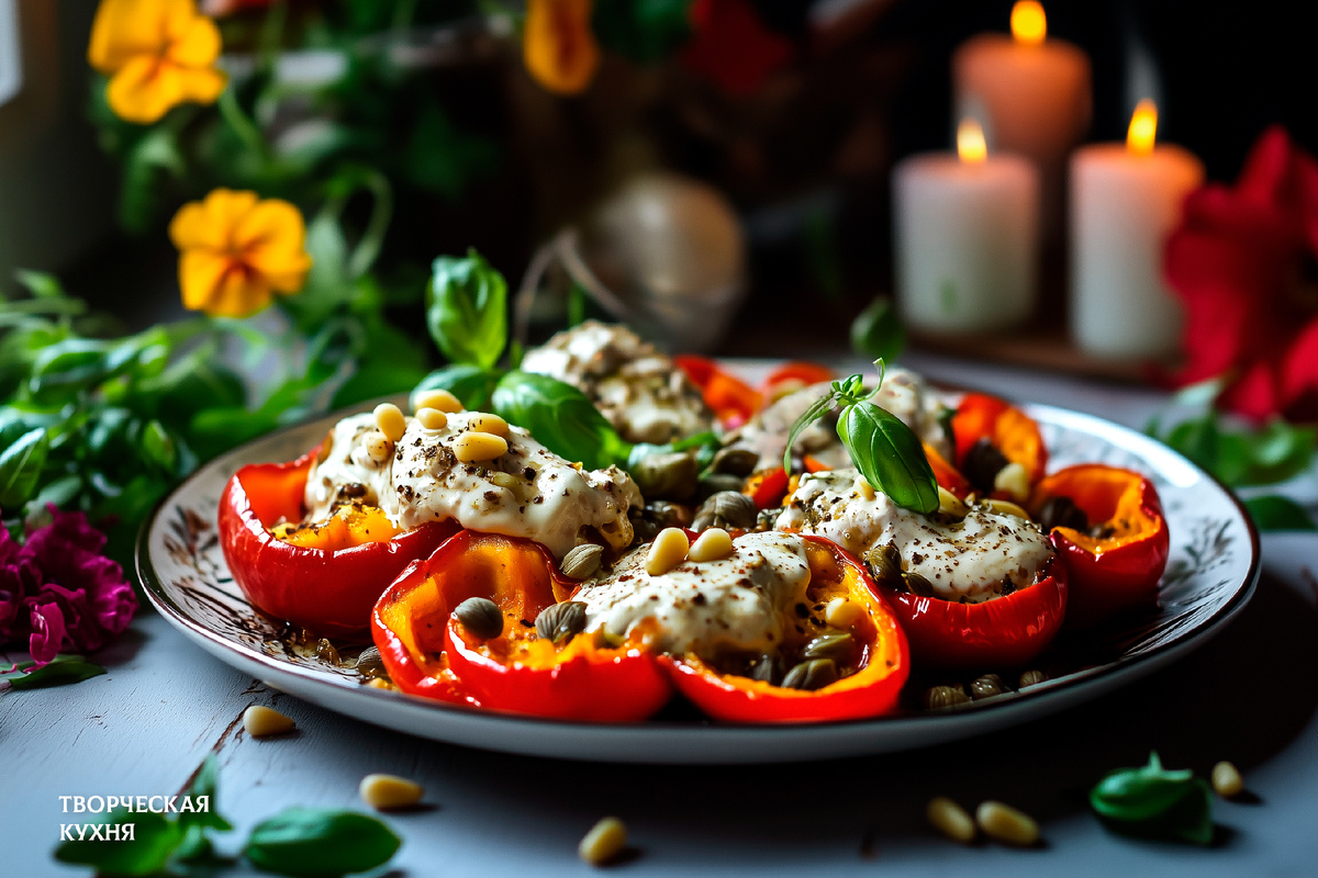 На столе зажгутся яркие краски и ароматы с появлением блюда, которое не оставит равнодушным никого. Сладкие болгарские перцы, запечённые до идеала, в сочетании с нежным тунцовым соусом создадут кулинарную симфонию, которая станет настоящим украшением любого праздничного застолья.